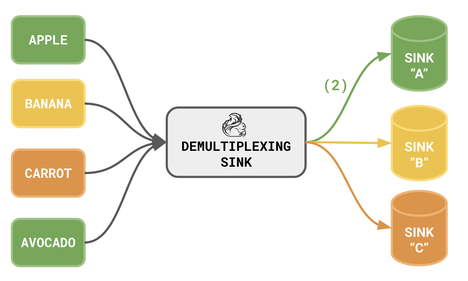 The DemultiplexingSink is a proposal to introduce a new Sink interface that supports the dynamically creation and routing to different sinks based on characteristics found within the data itself.